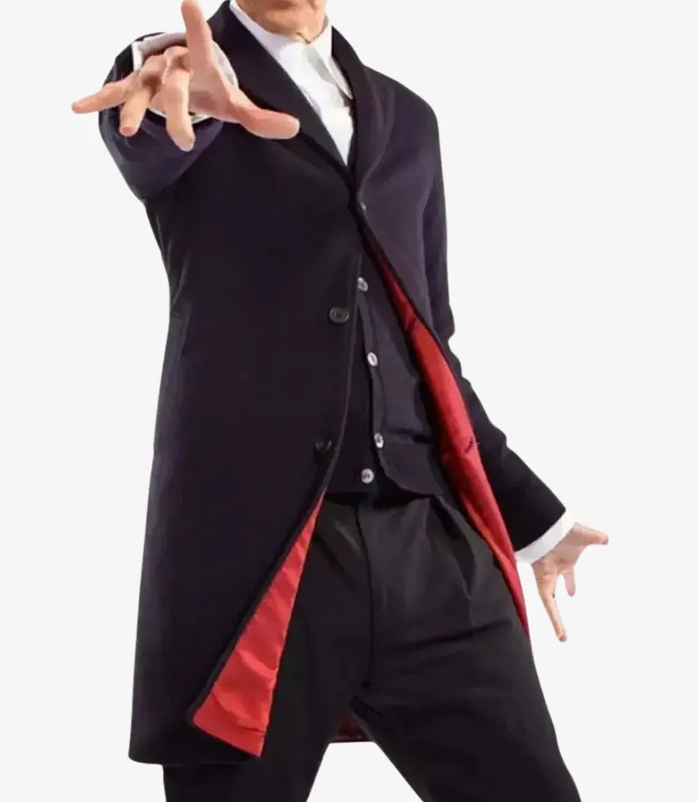 Manteau en laine bleu foncé pour homme, inspiré du Sixième Docteur. Sa teinte bleu foncé intense et sa coupe soignée offrent une version contemporaine d'un modèle classique, idéal pour les fans et les passionnés de mode.