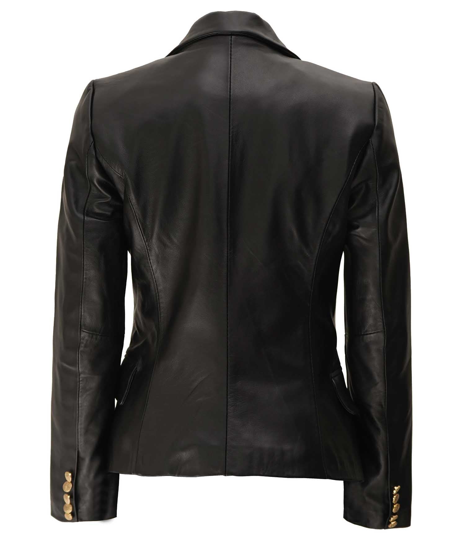 Kim Kardashian Blazer à double boutonnage en cuir noir